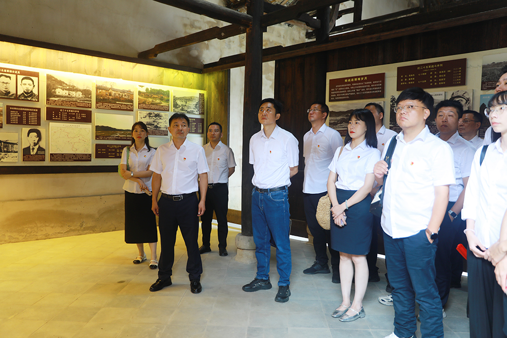 全体党员怀着崇敬之情,前往红二十五军旧址进行实地参观,在讲解员的引导下认真聆听每一段革命故事。大家从“小小红安,人人好汉;铜锣一响,四十八万;男将打仗,女将送饭”的民谣中,感受到了红安人民对革命事业的满腔热忱,更加坚定了全体党员为党和人民的事业不懈奋斗的理想信念。