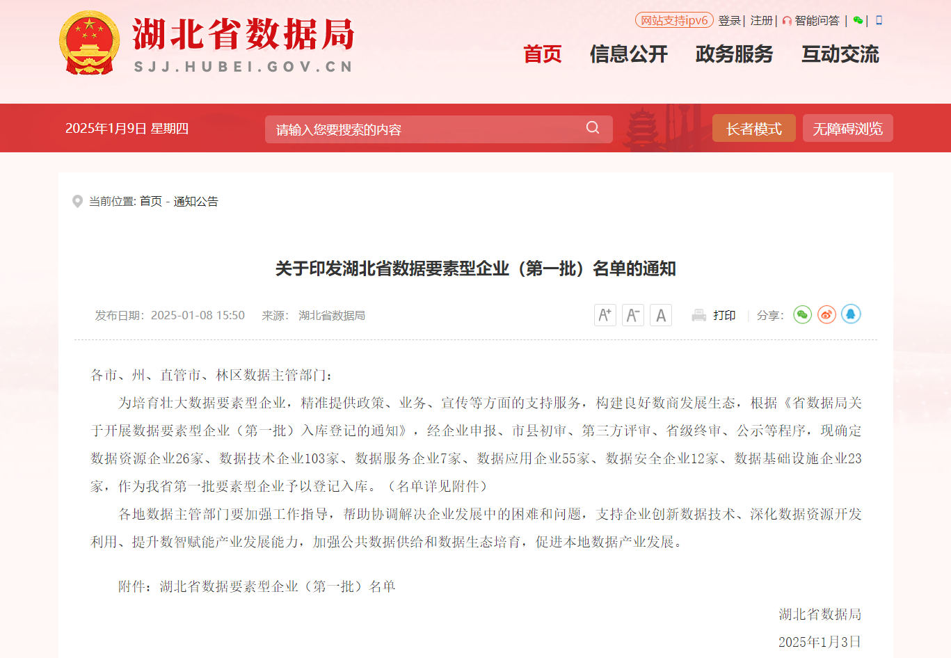 1月8日,湖北省数据局发布湖北省数据要素型企业(第一批)名单,williamhill中国官方网站入选湖北省首批登记入库的“数据技术企业”和“数据应用企业”。