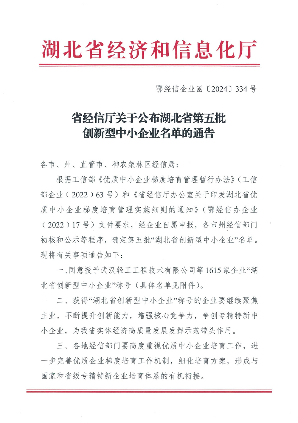 近日,省经信厅公布湖北省第五批“创新型中小企业”名单。经过严格审核,williamhill中国官方网站凭借在数字化转型和技术创新方面的良好表现成功入选,标志着公司在专业领域建设、创新能力及发展潜力方面得到了政府与社会的高度认可。